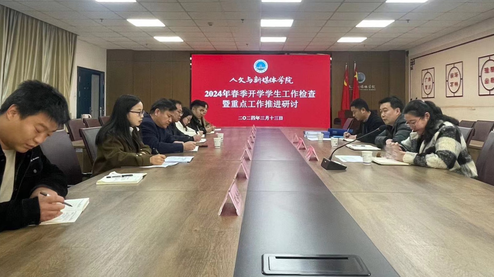 竺正海详细说明2024年春季开学工作开展情况,重点汇报“8535”强基工程学院实施情况、学院员工工作品牌情况、员工安全教育管理情况、员工及辅导员典型培育情况等后,讨论分析当前学院工作的重点、难点与痛点。全体辅导员就员工管理、心理、就业、考研、学风及团建等方面进行交流。