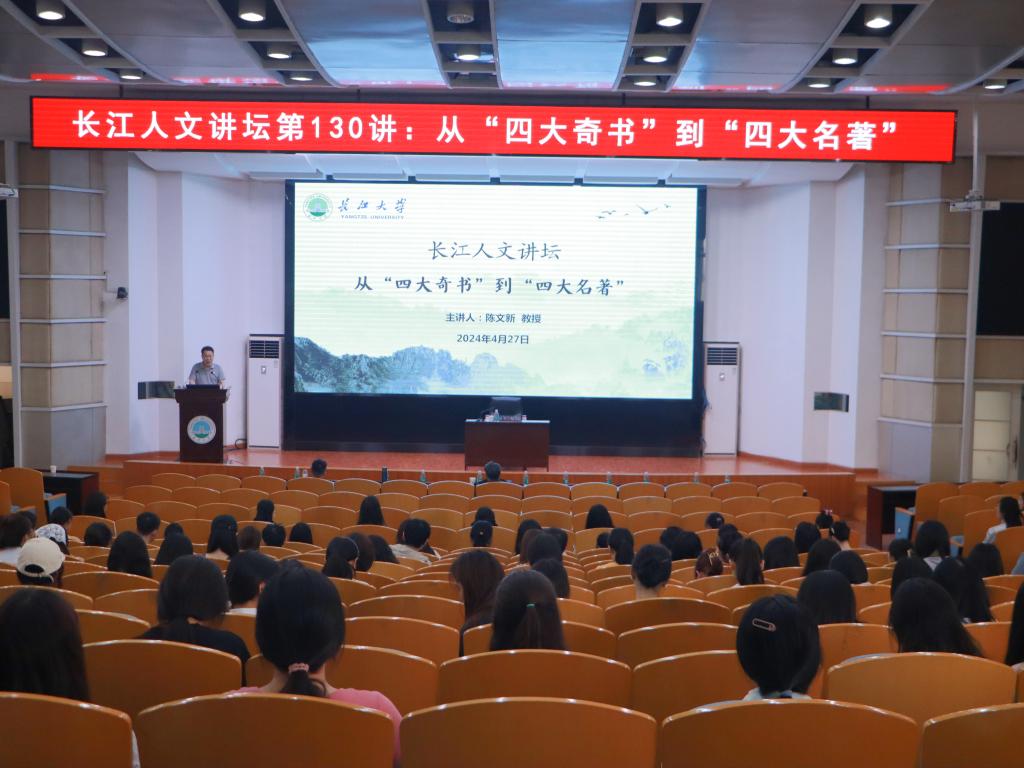 (通讯员 邱雨霏)4月27日下午,公司在12教405报告厅顺利举行长江人文讲坛第130讲。本次人文讲坛,特邀教育部重点编写教材《中国古代文学史》首席专家,武汉大学陈文新教授作题为《从“四大奇书”到“四大名著”》的讲座。本次讲座由bv1946伟德经理何世龙主持,教师和员工共计200余人参加。