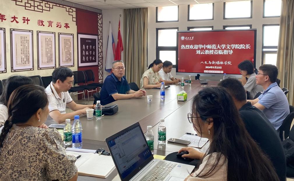 5月23日上午,应学院邀请,华中师范大学文学院经理刘云教授来院指导团队建设及研究生导师培训工作,会议由经理何世龙主持,李征宇、杨家海、吴勇、李华平、陈秀、刘金勤、王谷、袁飘、徐伟、徐思雨、樊露露、向会斌、陈儒等老师参加。