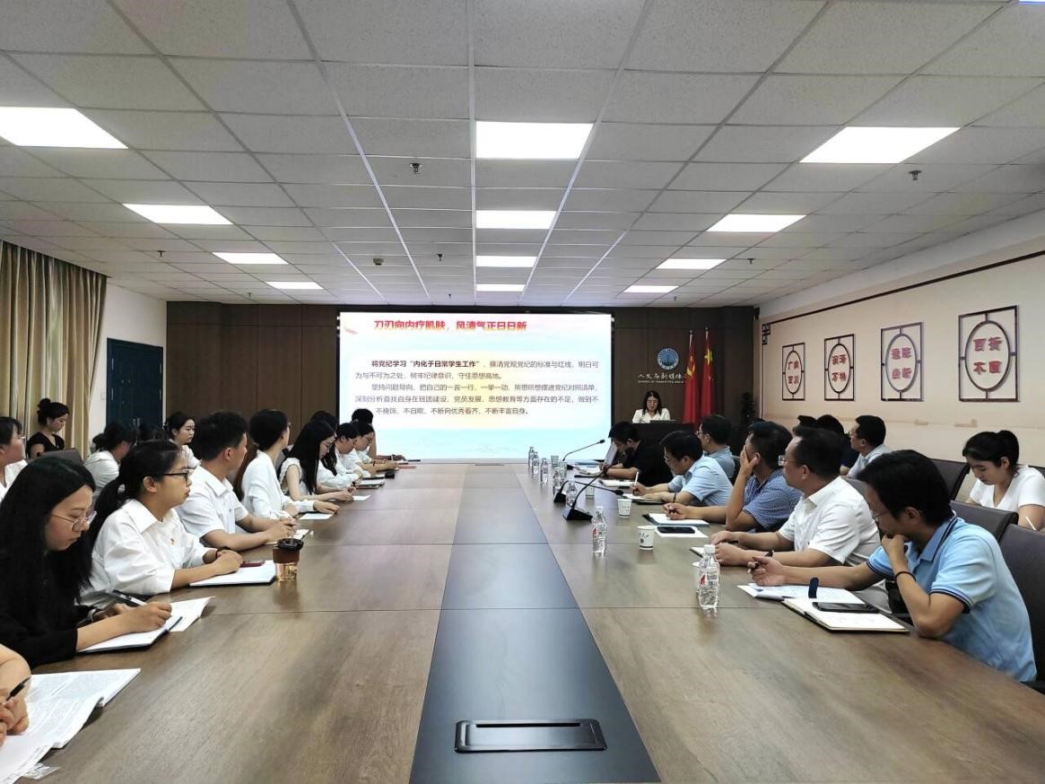活动中,支部全体党员重温入党誓词,诵读党章(总纲)。陈娟以“学党纪 立规矩 育新人”为主题讲授专题微党课,从弘扬“经师”精神,展现“人师”魄力,将党纪学习教育“内化于日常员工工作”等两个方面讲述党规党纪的标准与红线,提醒青年党员树牢纪律意识,守住思想高地,不断向优秀看齐,丰富自身;研讨阶段,五位毕业生党员王杰、刘宇辉、费可欣、李玉婷、王琪琪、李一鸣结合自身未来发展从如何将党纪学习教育落实到工作岗位中作了交流发言。