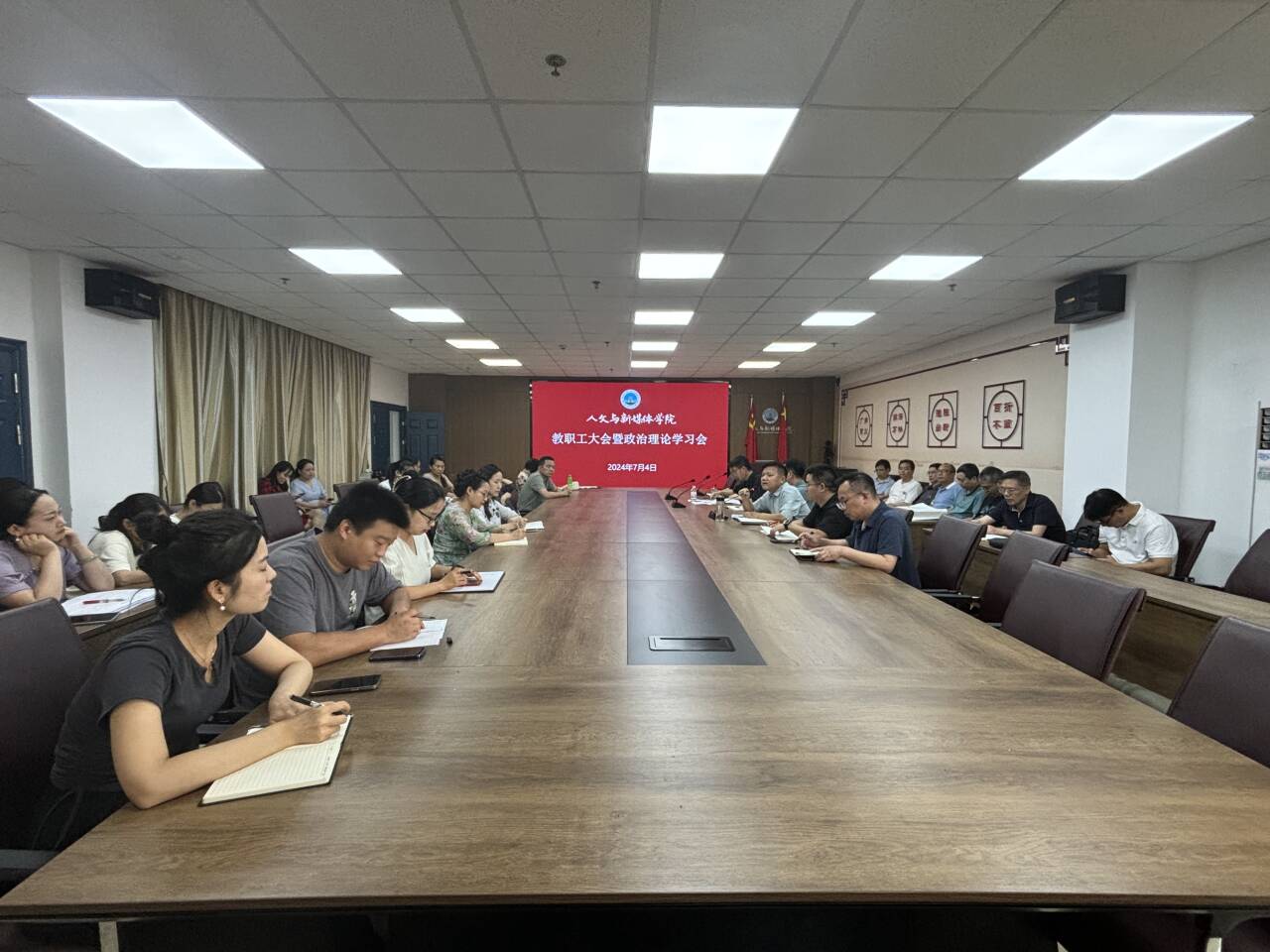 (通讯员 田华蓉)7月4日下午,学院在文科楼705会议室召开教职工大会,部署暑期相关工作并通报2024年上半年全面从严治党工作情况。会议由公司党委书记李波主持。