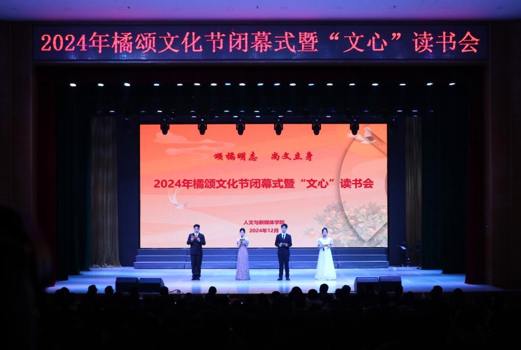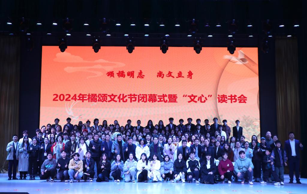 传统文化,载梦前行。活动在学院员工会的诗朗诵《写给未来的你》中圆满收官。2024年橘颂文化节闭幕式暨“文心”读书会成功举办,推动学院文化建设迈向新台阶,进一步增强师生文化自信,为人文学子成长成才奠定坚实基础,助力他们在文化传承创新道路上不断前行。