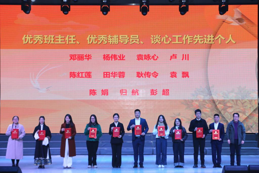 文以用心,培根铸魂。围绕立德树人的根本任务,落实“热爱员工、共促成长”的员工工作理念,活动对2024年度各类员工工作先进个人、集体及奖学金获得者进行表彰颁奖。学院2009届员工、广州妥能药业有限公司创始人胡罗珍,学校相关职能部门负责人、学院领导共同登台,为获奖师生颁奖,激励学院师生追求卓越,彰显学院文化建设成效。