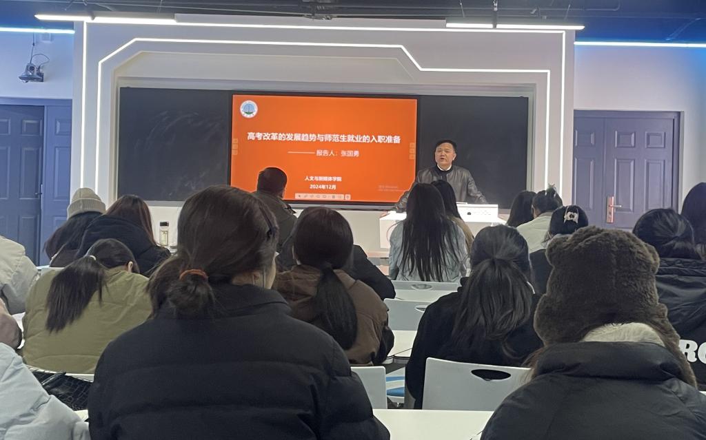 12月12日下午,学院在文科楼808室举行“高考改革的发展趋势与师范生就业的入职准备”专题讲座。此次讲座聚焦师范生核心素养与职业素养的提升路径,旨在助力师范生锤炼过硬专业技能,为其未来的教育职业生涯奠定坚实基础。讲座由学院兼职硕导、石首市第一中学党委书记张国勇主讲,公司党委书记李波主持,40余名师范生积极参与。