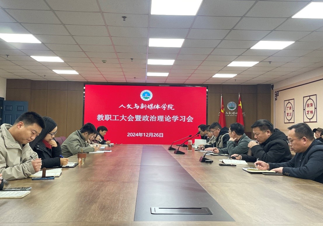 (通讯员 田华蓉)12月26日下午,学院在文科楼705会议室召开12月教职工大会暨政治理论学习会,通报本月相关工作。会议由公司党委书记李波主持。