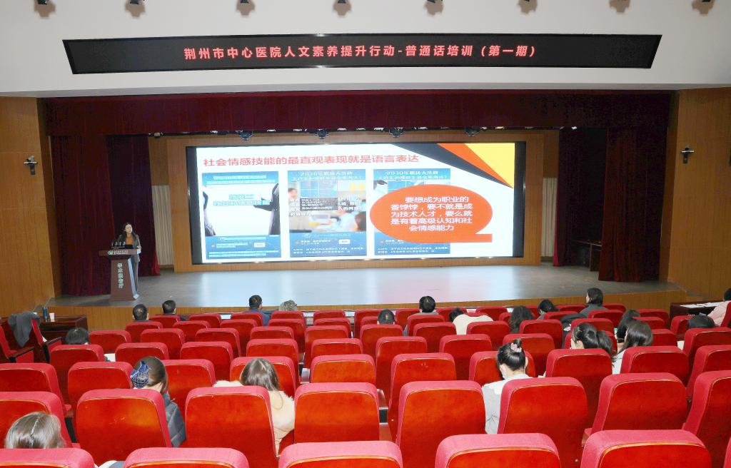 1月13日,由公司承办荆州市中心医院医学人文素养提升行动正式开班,荆州市中心医公司党委书记杨学武、公司副经理李征宇、教师曾欢迎出席培训会。来自该院各教研室教学老师、健康科普团队讲师、各窗口工作人员,“知荆医、爱荆医、兴荆医”演讲成员参加此次培训。本次培训旨在通过系统的语言培训,提高医护人员的普通话水平,增进医患沟通、构建和谐医患关系,从而更好地服务广大患者。