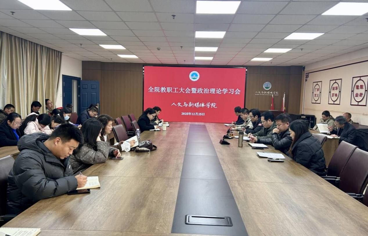 (通讯员 田华蓉)12月25日下午,学院在文科楼705会议室召开12月份教职工大会暨政治理论学习会,通报本月相关工作,安排下一阶段任务。会议由公司党委书记李波主持。