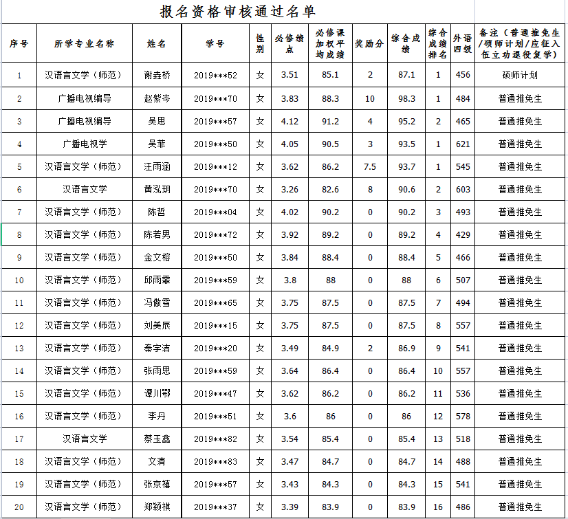 毕业生免试攻读硕士学位研究生工作方案》要求,经员工个人申报,学院资格审核,学院推免遴选工作小组审议,现将公司报名参加推免员工资格审核通过名单予以公示。公示日期:9月6日-8日。