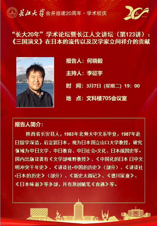 “长大20年”学术论坛暨长江人文讲坛(第123讲)